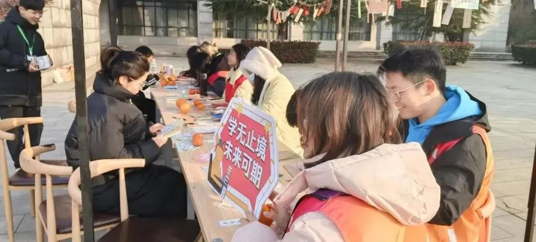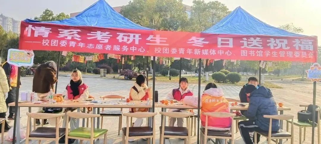 2023年12月20日, 由校团委青年志愿者服务中心、 校团委青年新媒体中心、 图书馆学生管理委员会, 联合举办的“情系考研生,冬日送祝福”活动, 在逸夫图书馆前开展。