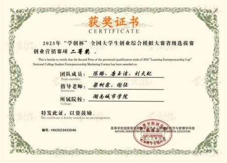 “学创杯”二等奖证书)