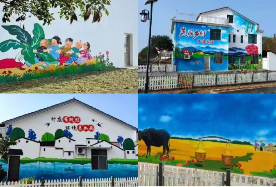 胡林翼村的深化:同年10月,他们在杨文副教授的引领下转战胡林翼村,以墙绘为载体,他们巧夺天工地将自然风景与乡村生活的元素融入画作,为村庄点缀上了一幅幅绚烂多彩的画卷,使其焕发出新的生机与活力。经过长达两个多月的辛勤耕耘,他们终于完成了10幅精美的墙面装饰和4条醒目的美术字宣传标语,这些作品覆盖的墙体总面积超过了800平方米,蔚为壮观。这次活动不仅让乡村的外在环境焕然一新,更是极大地提升了村民们的文化自信。