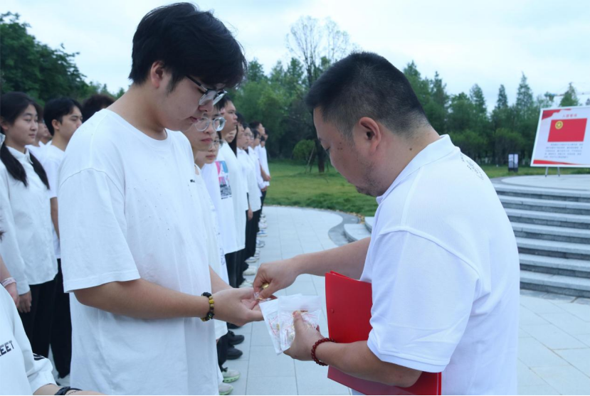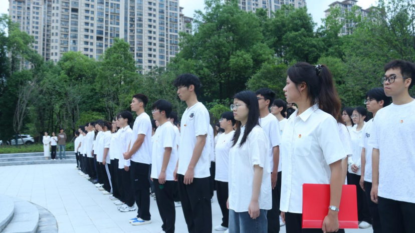 入团仪式在铿锵有力的国歌声中拉开帷幕,校团委老师胡威朋宣布了新团员名单。校团委的老师亲手为新团员佩戴上了团徽,这一刻,标志着他们正式成为光荣的共青团员。校团委副书记周洁带领新团员高举右手进行入团宣誓,在未来他们将时刻铭记入团初心,坚定共产主义远大理想和中国特色社会主义共同理想,将誓词镌刻在心里、落实到行动上。
