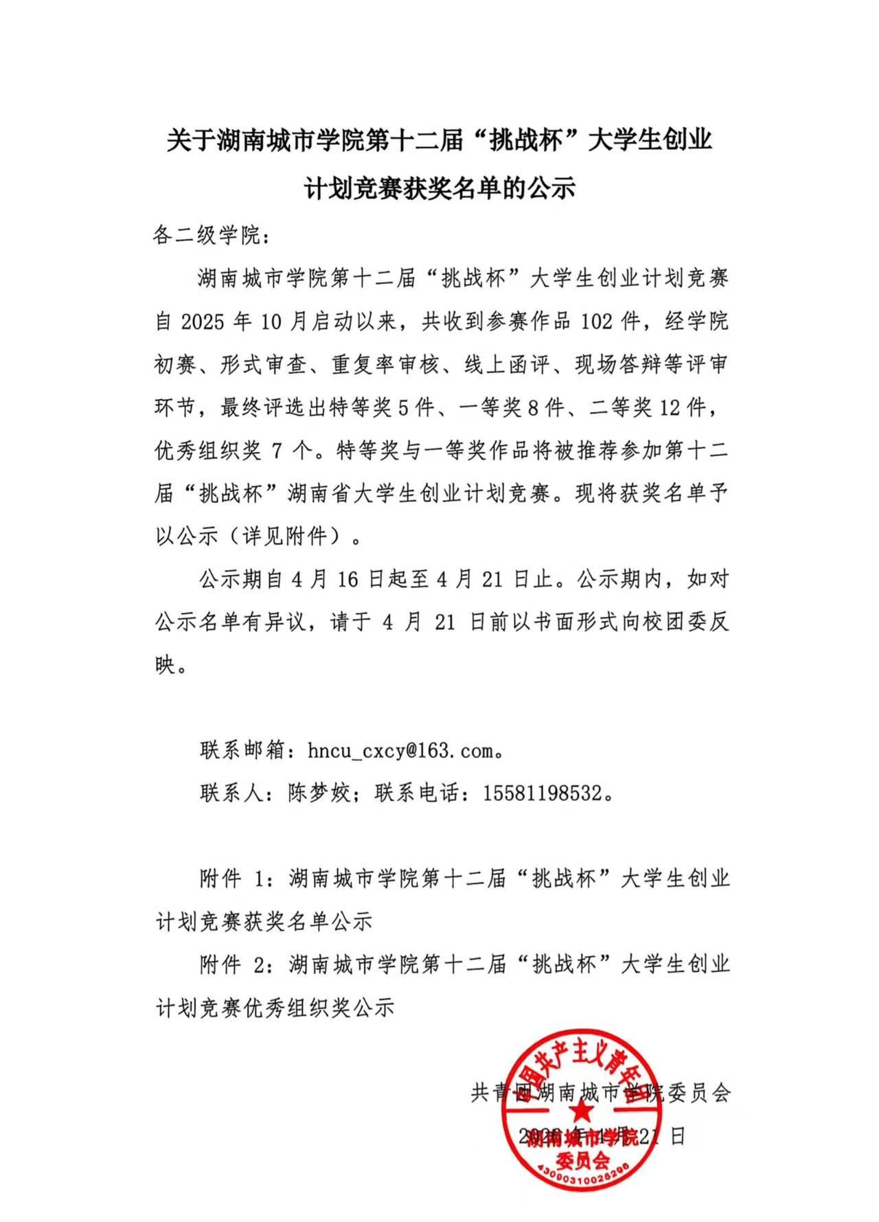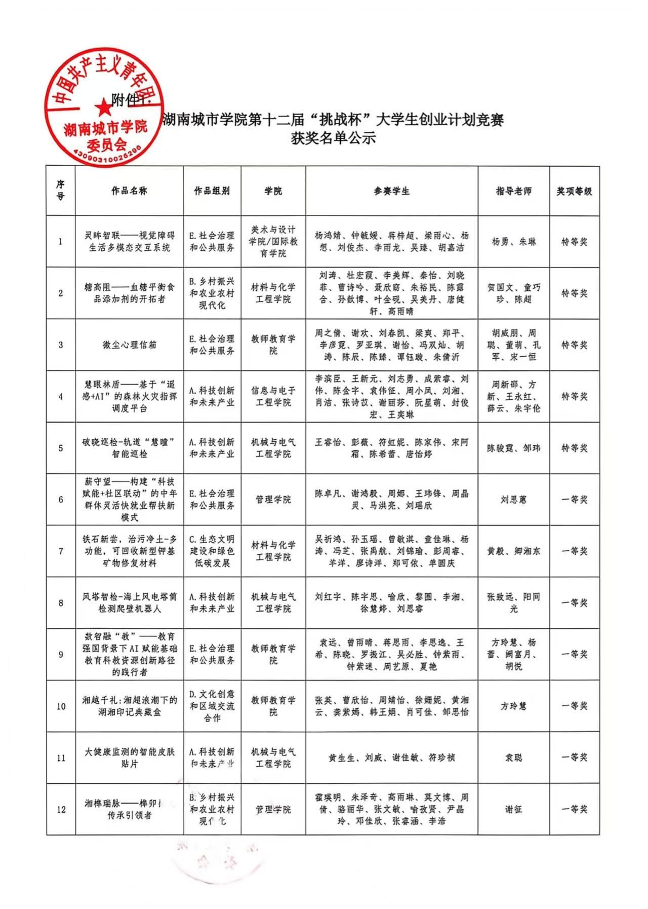 关于0638太阳集团官网第十二届“挑战杯”大学生创业 计划竞赛获奖名单的公示