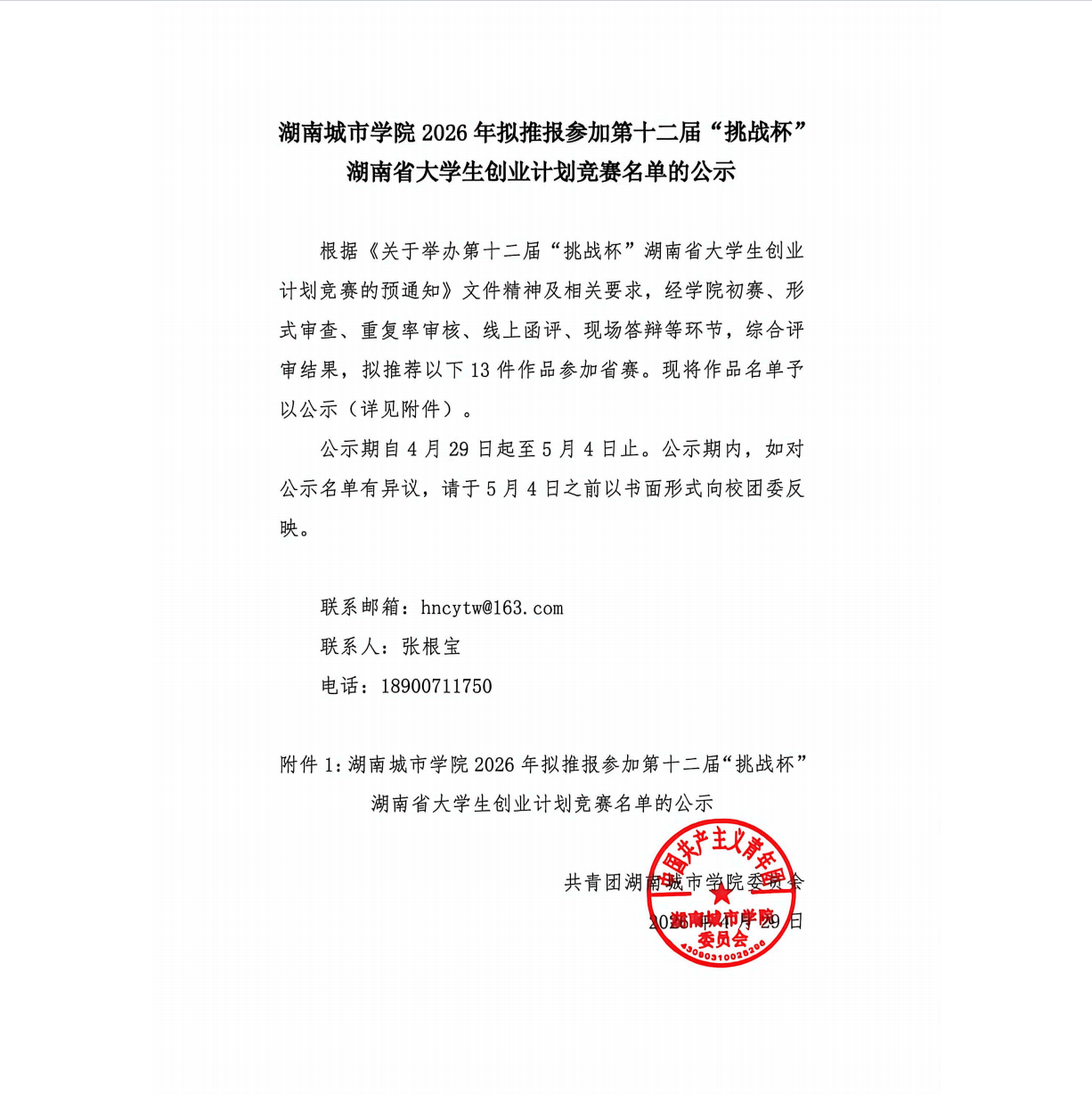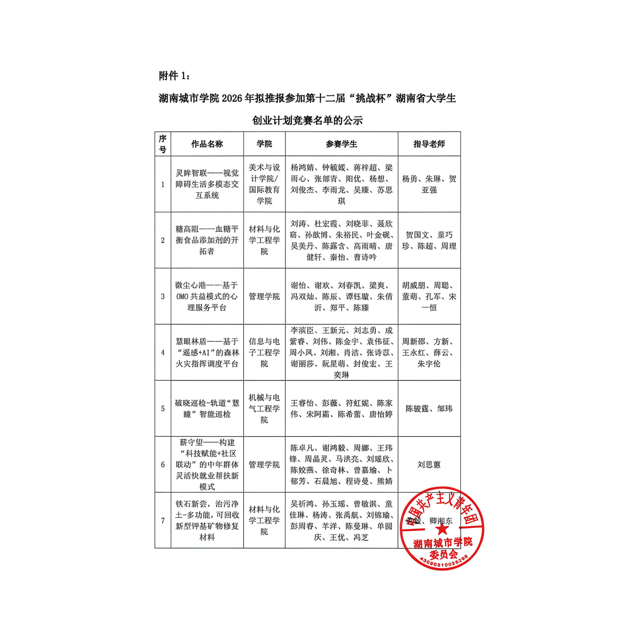 0638太阳集团官网2026年拟推报参加第十二届“挑战杯”湖南省大学生创业计划竞赛名单的公示