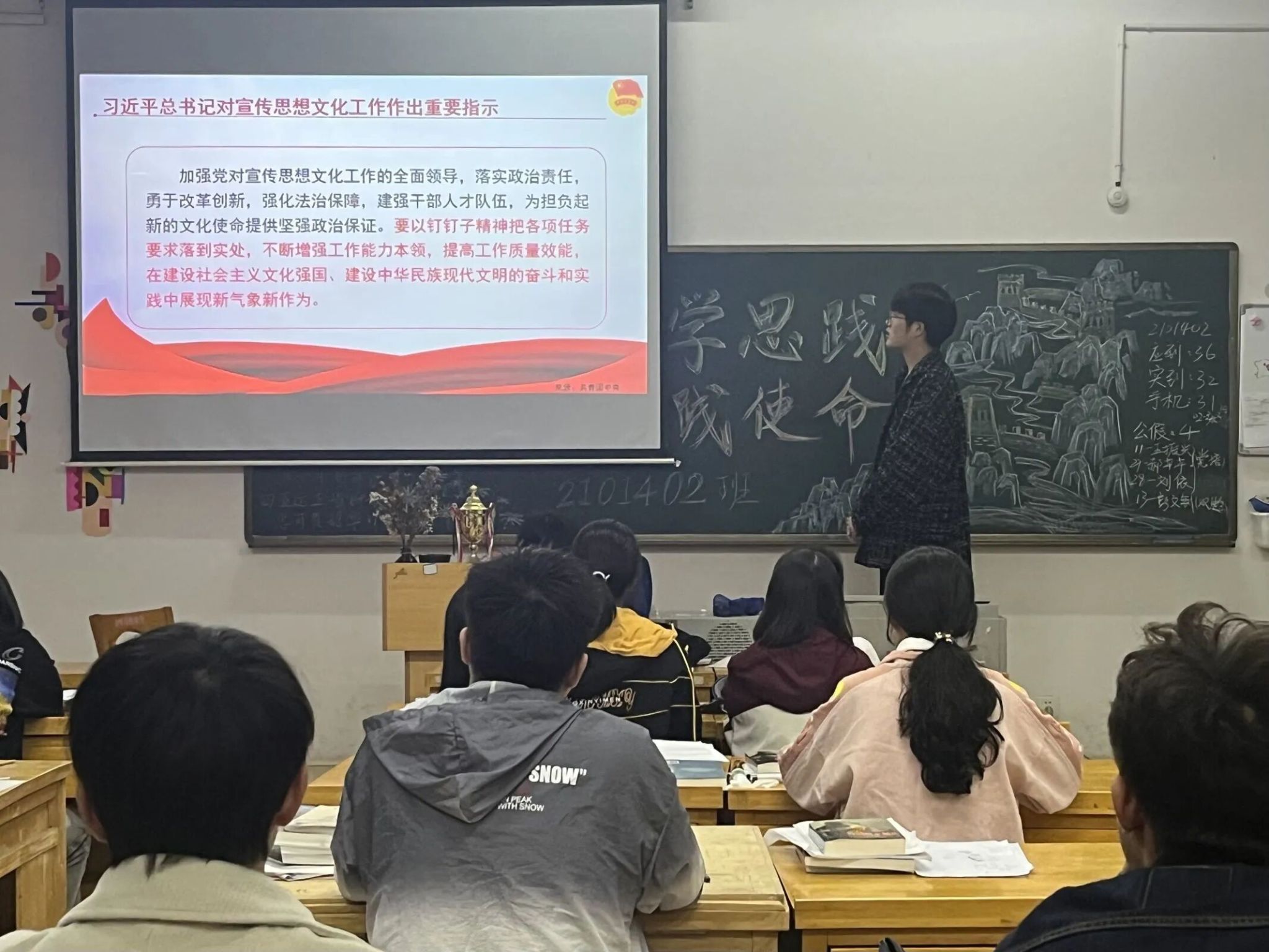 教师教育学院2314105团支部的刘学娟同学在参加本次主题政治学习后表示:“通过本次政治学习,我深刻意识到我们青年一代所背负的时代重任。中国走过的这五千多年,步步艰辛,老一辈抗起红旗,将中国从苦难的泥潭中拉出。作为一名新时代的接班人,我们应该努力学习,贯彻落实习近平新时代中国特色社会主义思想。”