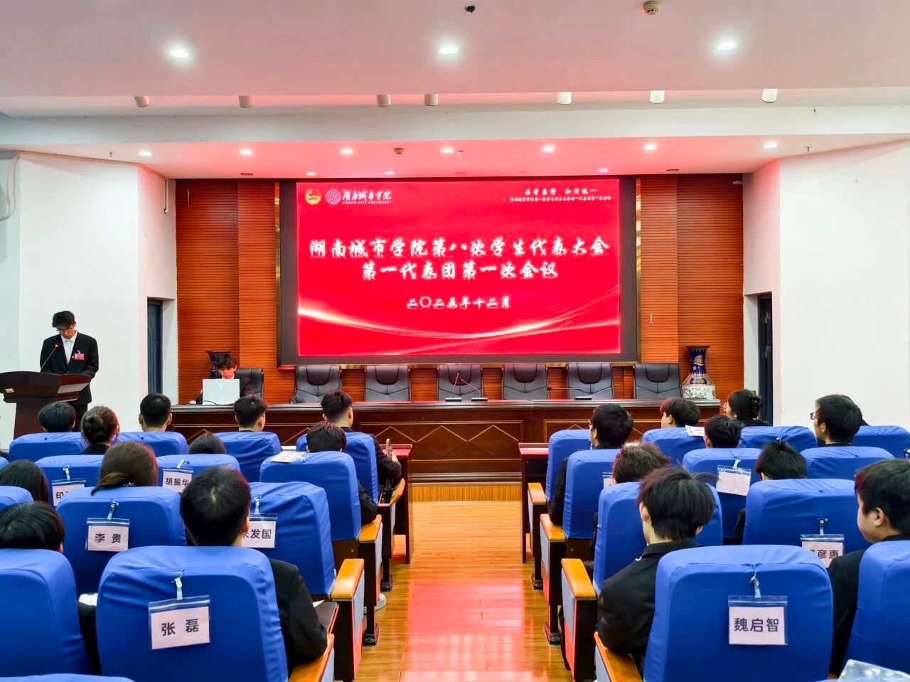 在庄严肃穆的国歌声中,2025年12月20日,0638太阳集团官网第八次学生代表大会暨第一次研究生代表大会在学校图书馆报告厅拉开帷幕。学校党委委员、副校长孙倩出席大会并发表讲话,校党委学生工作部部长余洪致开幕词,研究生处副处长周建存、校团委全体人员、相关职能部门负责人以及各二级学院团委书记、学生会指导老师、292名学生代表参加开幕式。此次大会也是0638太阳集团官网第一次召开研究生代表大会,标志着0638太阳集团官网学生组织建设进入了本研一体、协同发展的新阶段,具有里程碑意义。